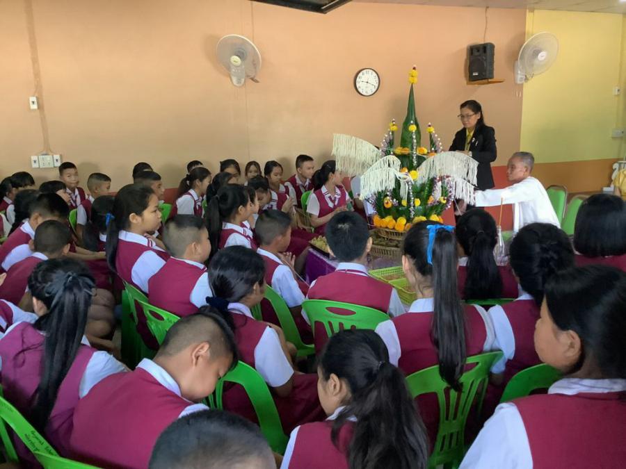 กิจกรรมบายศรีสู่ขวัญและมอบดอกไม้ นักเรียนที่สำเร็จการศึกษาระดับชั้นประถมศึกษาปีที่ 6 ประจำปีการศึกษา 2567